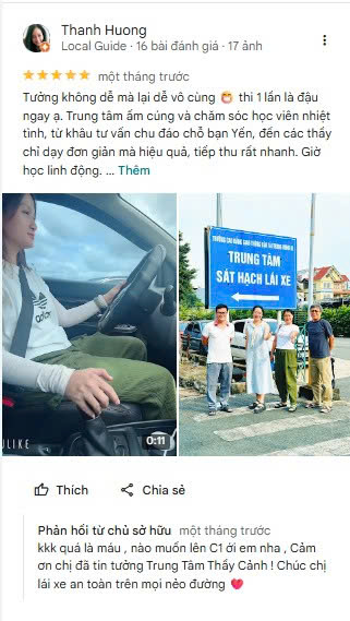Trung tâm dạy lái xe Thầy Cảnh đào tạo lái xe B C1 uy tín, học thực hành sát thực tế, đậu cao, giáo viên nhiệt tình, lịch học linh động phù hợp mọi học viên.